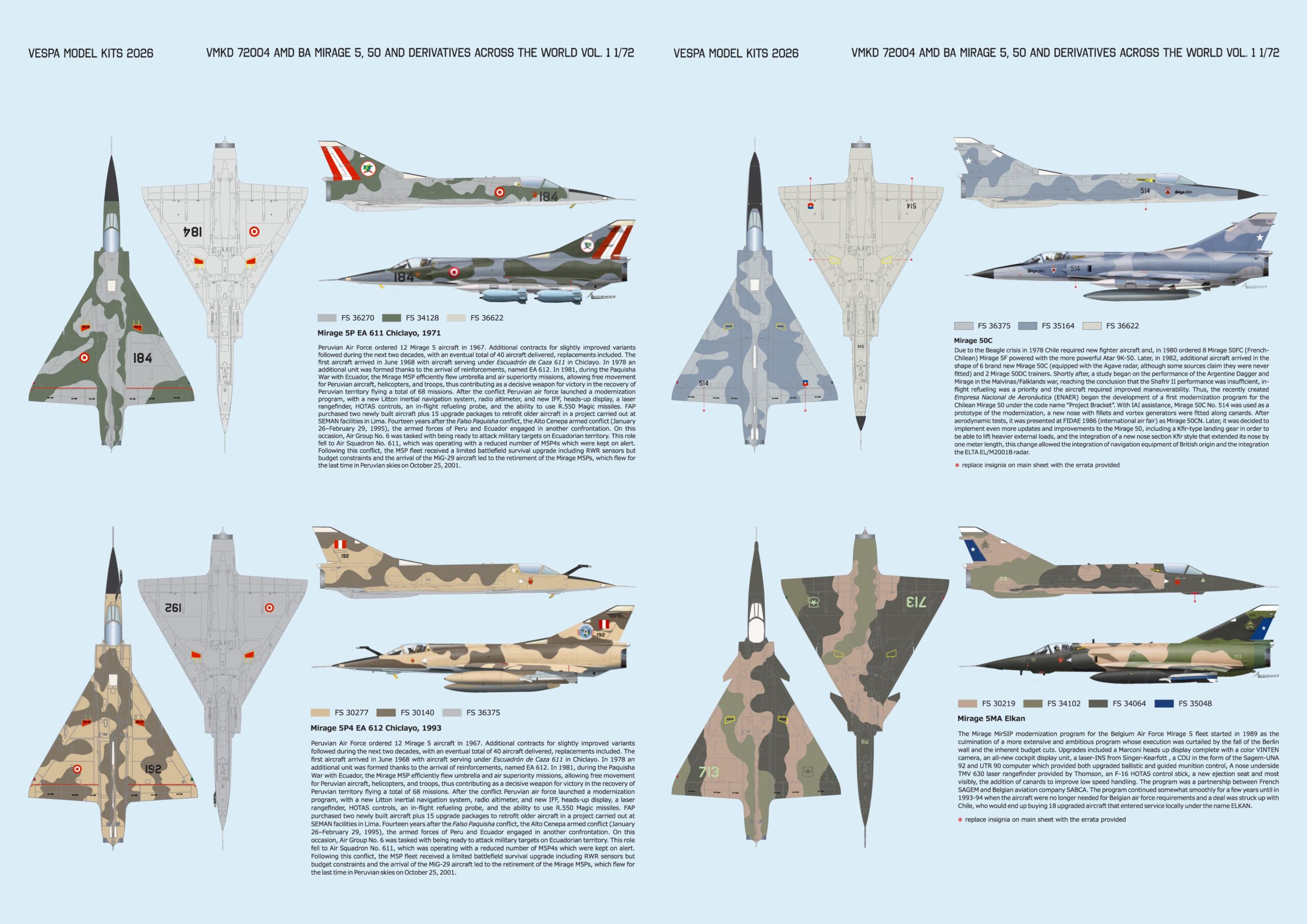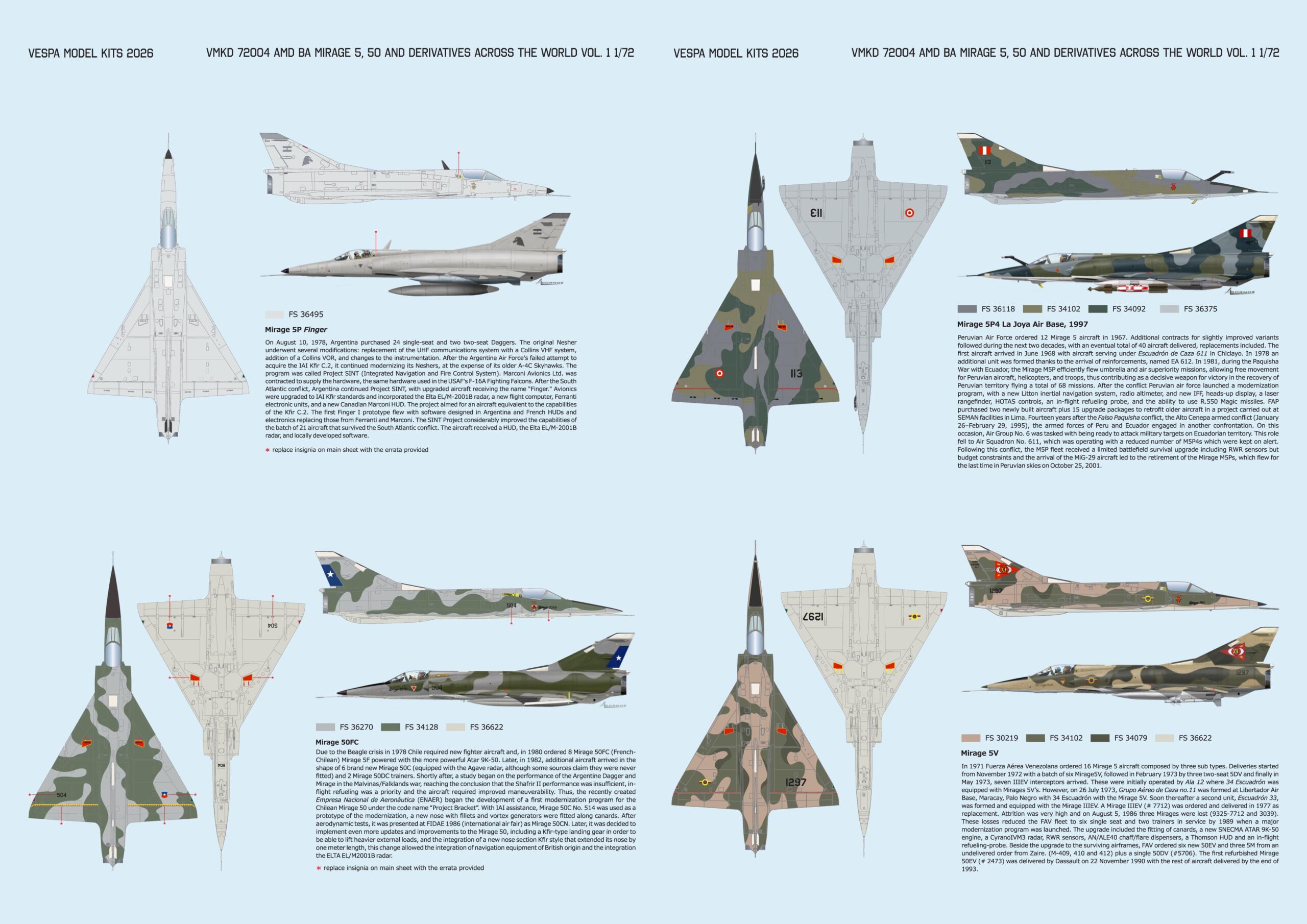 Previous Product Next Product VMKD 72004 Cosmopolitan Deltas: Mirage 5,50 and Derivatives Vol.1 $18.50 VMKD 72004 Cosmopolitan Deltas: Mirage 5,50 and Derivatives Vol.1 quantity Add to cart Description Description Decal sheet containing options for Mirage 5, 50 and Derivatives flown in South America including aircraft operated by Argentina, Chile, Colombia, Ecuador, Peru and Venezuela. Designed in Peru, printed in Italy by Cartograph. Related products Quick View Quick View Decals, 1/48VMKD 48008 Cosmopolitan Deltas: Mirage 5, 50 and Derivatives Vol. 2 $20.00 Add to cart Quick View Quick View Decals, 1/48Tumansky-Engined “Fitters” Vol.2 $24.50 Add to cart Quick View Quick View Decals, 1/72Counterinsurgency Latin American Shooting Stars $18.00 Add to cart